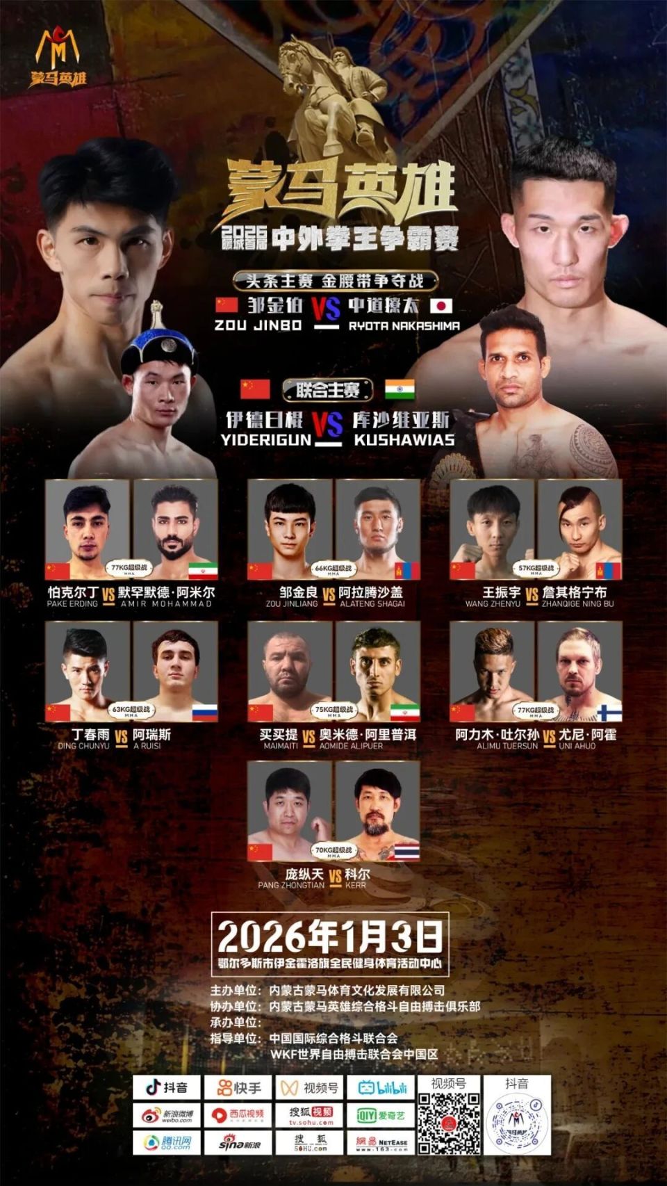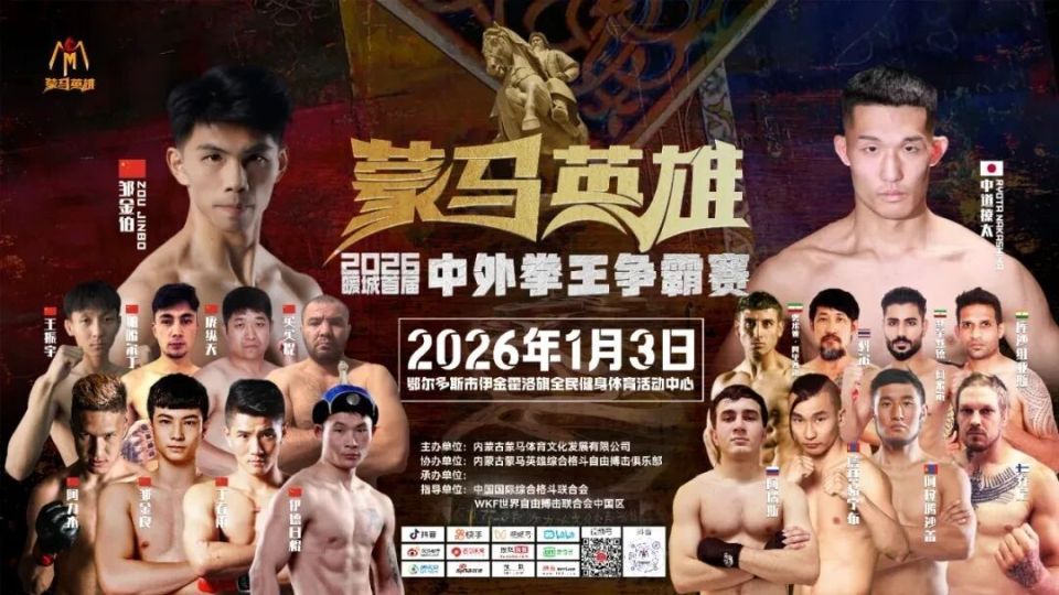 近日,中国首档以弘扬蒙古马精神为己任的原创综合格斗赛事品牌《蒙马英雄综合格斗冠军赛》正式官宣,2026年1月3日将携全新赛程震撼登陆内蒙古鄂尔多斯市伊金霍洛旗全民健身体育活动中心,本次大赛阵容空前豪华,由国内综合格斗新生代中坚力量“特种兵”邹金伯及其兄弟邹金良领衔的中国顶尖战队,将在伊金霍洛旗全民健身体育活动中心迎战来自日本、俄罗斯、印度、伊朗、泰国、芬兰以及蒙古国等七个国家的格斗豪强,这不仅是力量与技巧的碰撞,更是一场体育与文化交融的盛宴,必将为伊金霍洛旗的旅游发展与居民文化生活注入全新的活力。